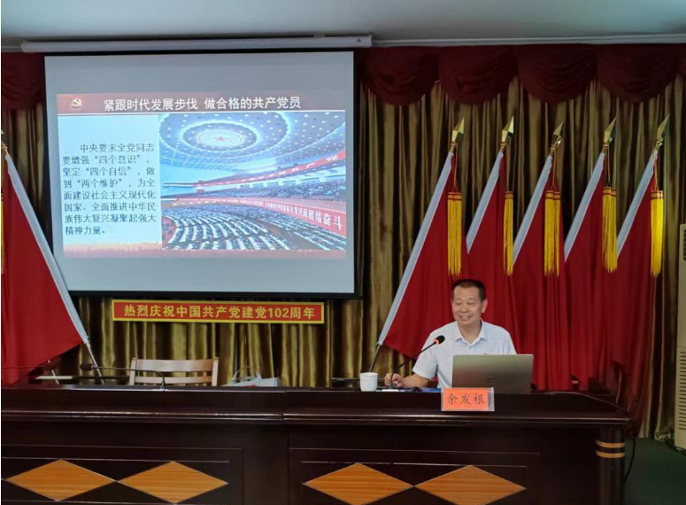 之后,庆祝建党102周年暨“七一”表彰大会在雄壮的国歌中开始,由党组成员、副主任杨鹏领誓,全体党员重温了入党誓词。