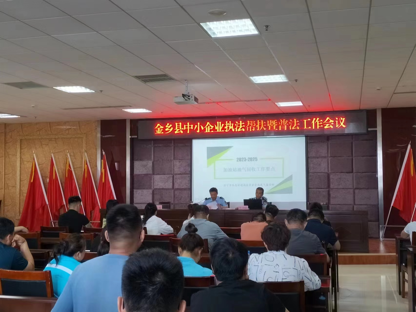 为进一步落实“谁执法、谁普法”责任制,更好地做好生态环境执法帮扶工作,转变监管理念,优化执法方式,推动企业高质量发展,提高全县中小企业环境保护责任意识,2023年6月30日济宁市生态环境局金乡县分局针对全县86家加油站油气回收系统运行过程中存在的问题召开专题执法帮扶暨普法培训会。全县加油站负责人参加会议。