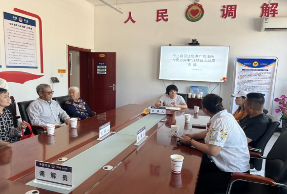 参观结束后,召开“为民办实事”开放日座谈会。司法所所长向受邀群众介绍了司法所重点工作、“一所一品牌”特色亮点、服务举措和近年来所取得的各项工作成绩。受邀群众就司法所开放日的体会和对基层司法行政工作的建议进行交流发言,对司法行政工作提出了宝贵意见和建议。同时,司法所工作人员就群众关心、关切的问题进行了一一回应,解答相关政策问题,并提供法律上的一些建议。最后,司法所工作人员为受邀群众代表发放“法治大礼包”。通过发放普法宣传品和《学法用法民法典三字经》等普法宣传材料,增强群众学法守法意识,营造浓厚的法治氛围。