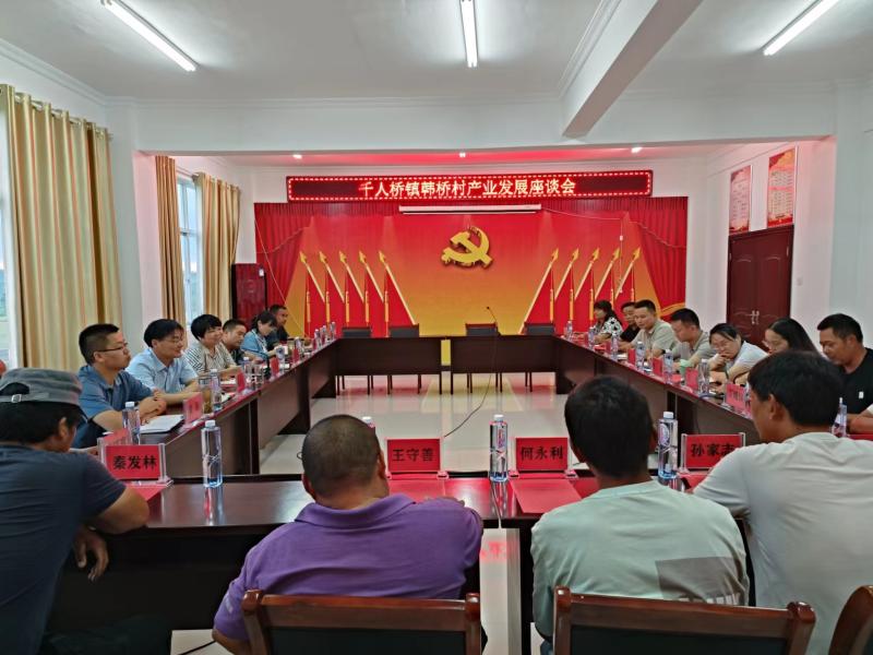为共商产业发展,推进产业振兴,7月4日晚上,千人桥镇韩桥村召开产业发展座谈会。千人桥镇党政主要负责人,人大、政协及分管同志,韩桥村驻村工作队全体成员、村两委干部、部分党员和大户代表参加会议。