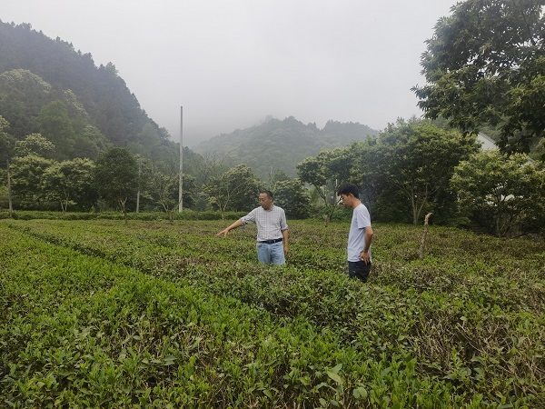 王伦现场查看詹冲村滴埠山、戴家湾等茶园,指出了目前河棚镇茶产业发展情况以及茶产业存在的主要问题,强调夏季茶园管理的重要性,并就茶园夏季修剪、施肥、耕作、病虫害防治、湿害防治等茶叶管理知识深入浅出进行系统讲解,给詹冲村茶叶种植户们科普了许多前所未闻的茶叶生产等方面的新知识。