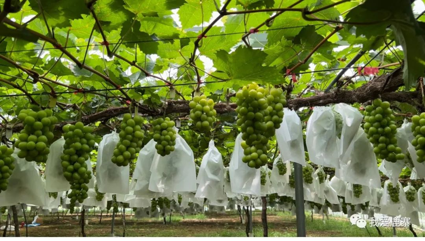 随后,记者来到种植户赖德良的葡萄园中,园内的葡萄种类繁多,郁郁葱葱的葡萄挂满枝头,一串串整齐的排列着,赖德良满眼欢喜,他告诉记者,他种植的葡萄品种都深受消费者喜爱,今年应该会有好的收成。在一旁,三三两两的村民正在给成串的葡萄套袋,这些都是赖德良在本村请来的工人,他深知自己身上的职责,不光是自己富起来,还不忘带领村民共同致富。