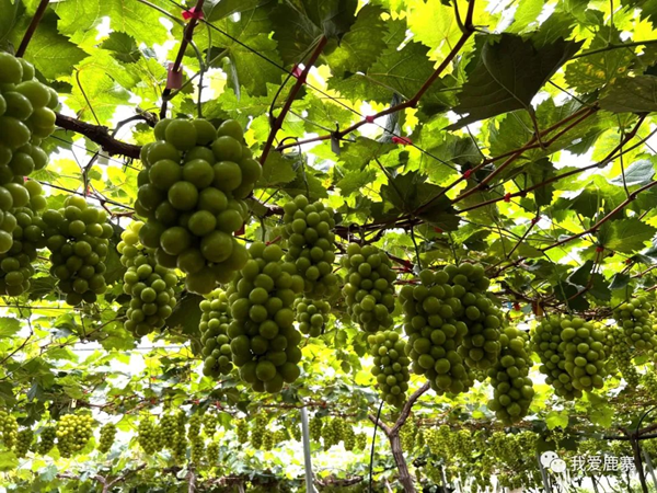 近年来,鹿寨镇角塘村通过支部引领、党员骨干率先垂范,倡导、发动群众将自家土地进行流转,通过“小块并大块”、引进企业种植等模式大力发展精品葡萄种植,打造了鹿寨县现代特色农业(核心)示范区。眼下正是葡萄成熟的季节,示范区内的千亩葡萄也逐渐成熟,道路两旁蜿蜒几里,皆可看到诱人的果实。农户们在果园里精心地护理着这些即将“出笼”的“金果果”,脸上洋溢着丰收的喜悦。