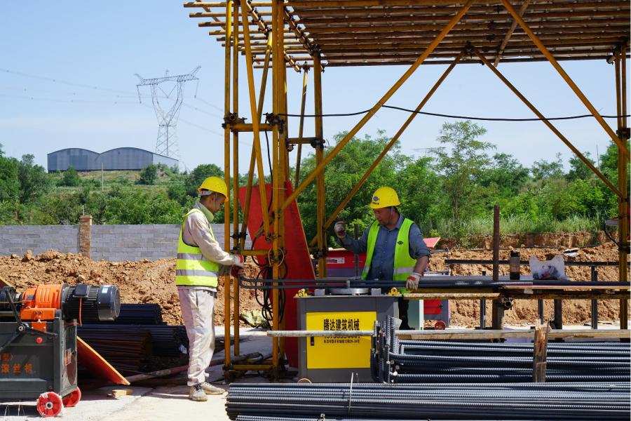 7月5日,在我县慈林镇节能环保循环经济园区内科利华危固废资源循环利用项目施工现场,工人们顶高温、战酷暑,抢时间、抓进度,全力以赴加快工程建设。