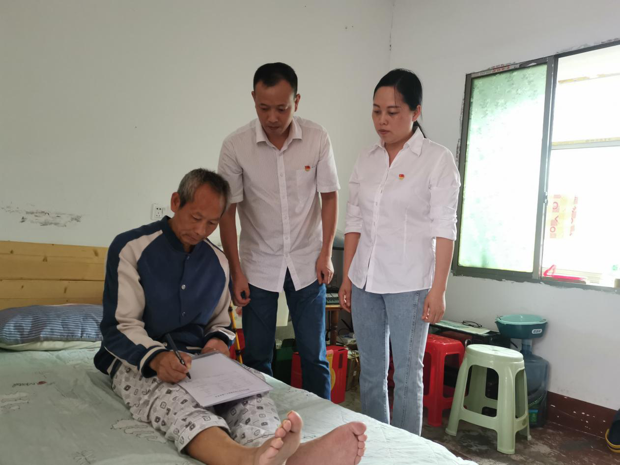 2023年6月26日,原衡阳市迥雁峰酒厂职工,因中风行动不便,无法亲自到柜台来办理住房公积金提取业务。又因单位已改制,授权委托书无法加盖单位公章,其他人员也无法代办。珠晖管理部了解到具体情况后,两名党员同志主动请缨,发挥党员先锋模范精神,贴心为客户提供上门服务。