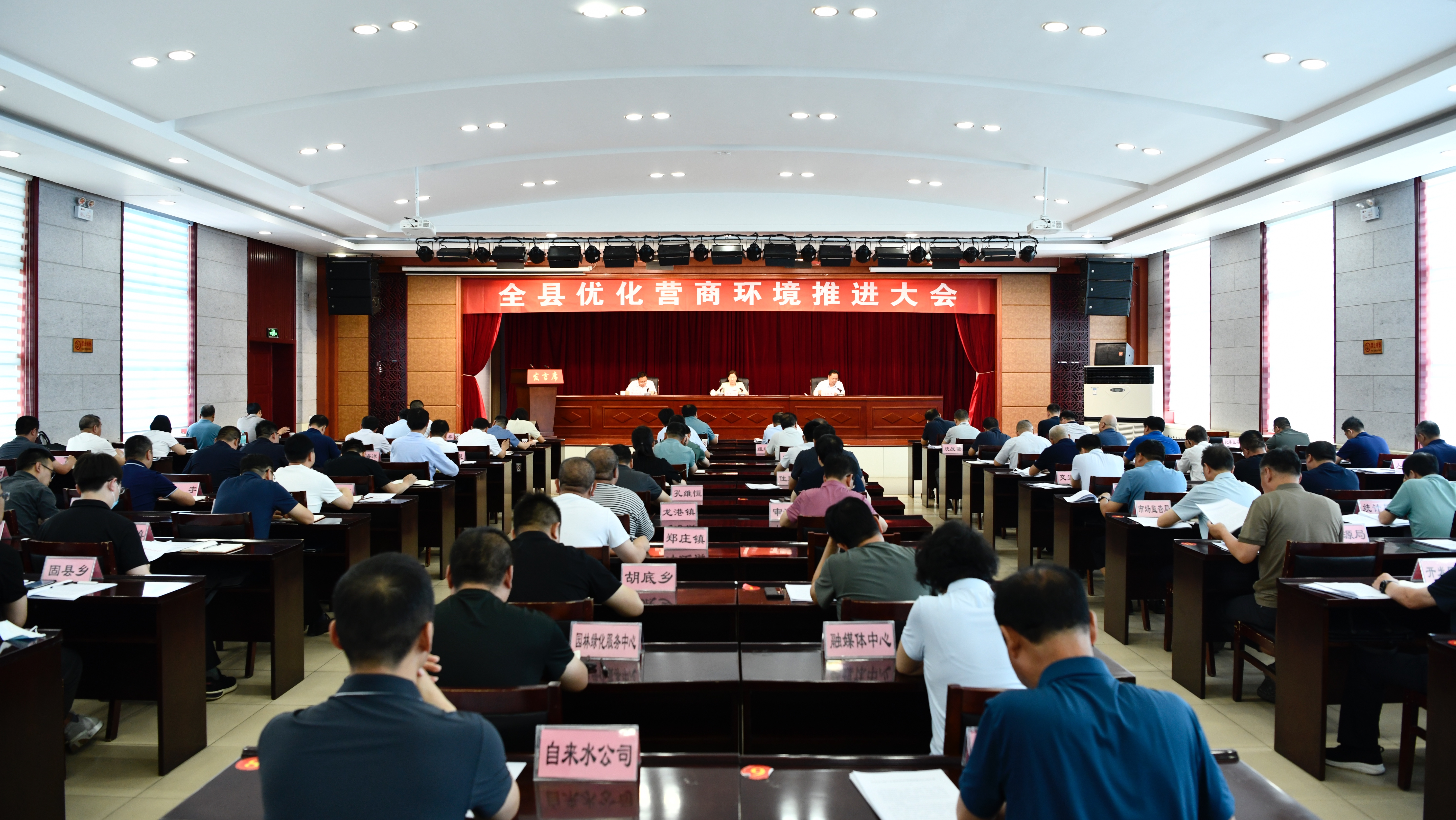 (本网讯)7月5日,全县优化营商环境推进大会召开。县委书记任彩虹出席会议并讲话。县委常委、常务副县长李小斌主持会议。李永斌、韩海亮、李雪丽、闫立志、霍鹏、李春、张少帅、庞雅亮、刘勇、王江龙、杨守顿、谭爱国等县领导参加会议。