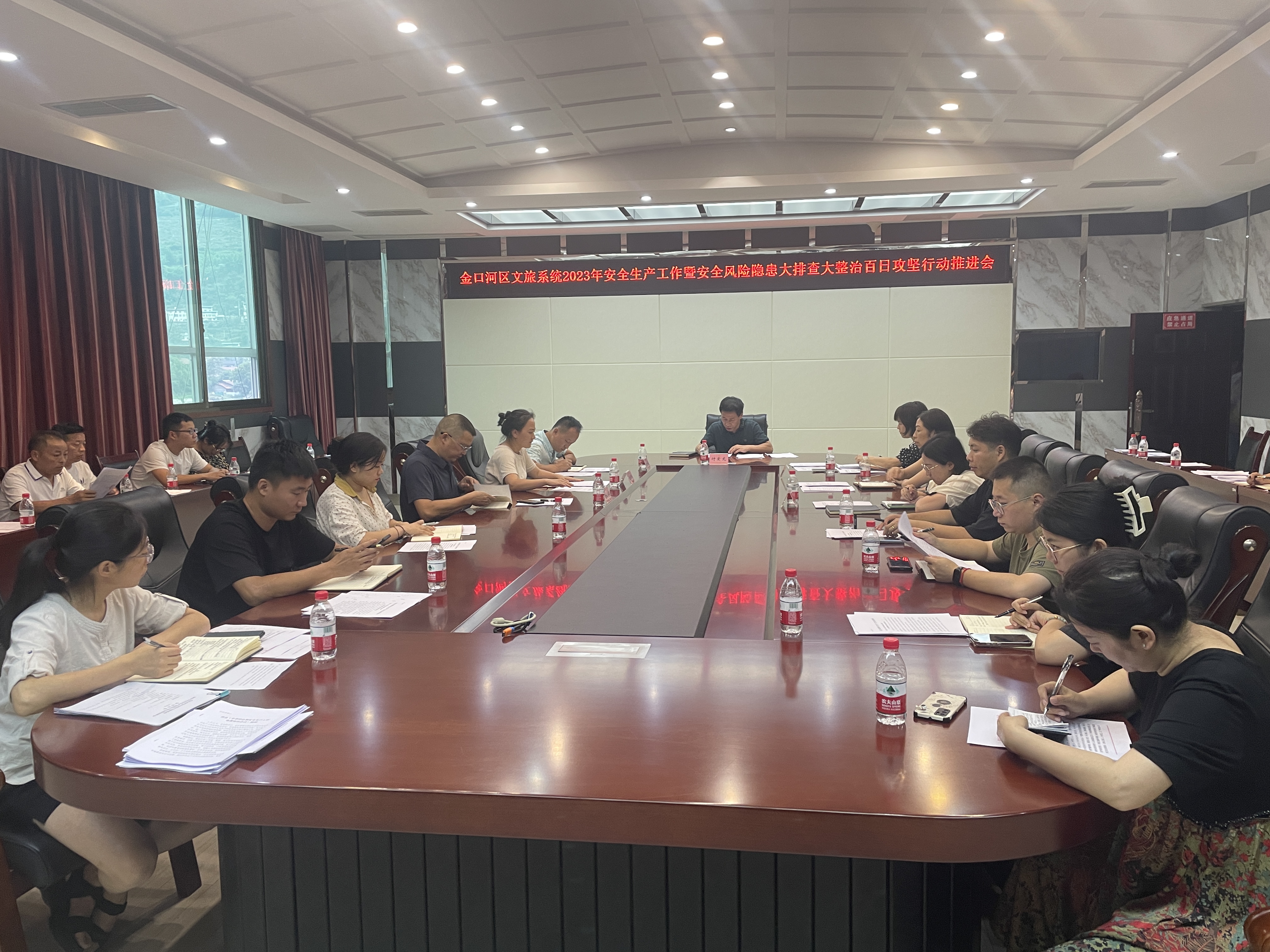 近日,区委常委、宣传部长付爱龙主持召开文旅系统安全生产暨百日攻坚工作会。重点组织学习了安全生产相关资料,对文旅系统近期安全工作进行复盘,对全覆盖隐患再排查再整治进行安排部署。区文旅局、区文旅中心、金旅公司全体干部职工,永和镇、共安乡分管领导参加会议。