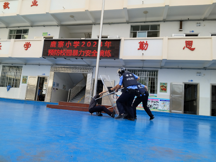 近日,鹿寨小学特邀县公安局的民警,在学校前操场开展防暴演练活动,为该校师生、安保人员、护卫队上了一堂精彩的防暴“实战课”。