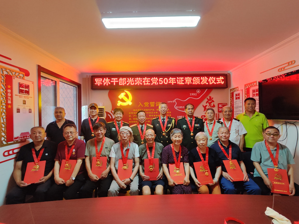 为传递党中央关怀,“七一”前夕,朝阳区各军休所举办“光荣在党50年”纪念章颁发活动,以此弘扬老党员的奋斗精神,激励广大军休党员干部牢记党的宗旨,踔厉奋发、勇毅前行,为军休事业高质量发展作出更大贡献。