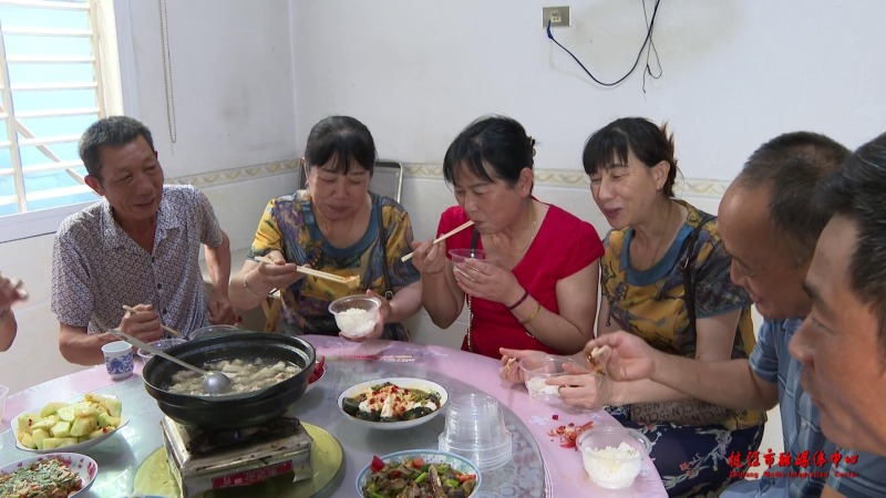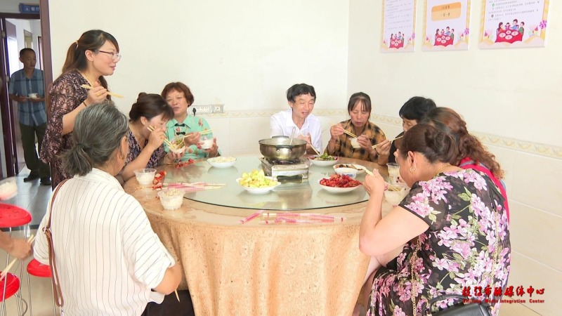 中午12点,在董市镇曹店村的“幸福食堂”里,老人们围坐在餐桌前,一边享用着可口的饭菜,一边开心地话着家常。