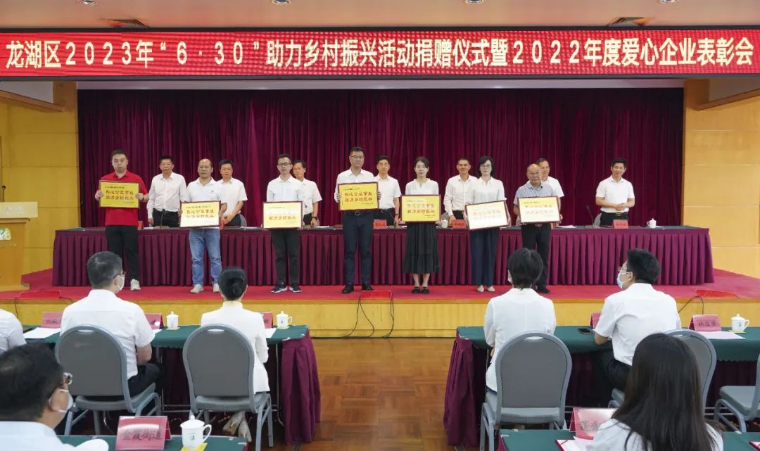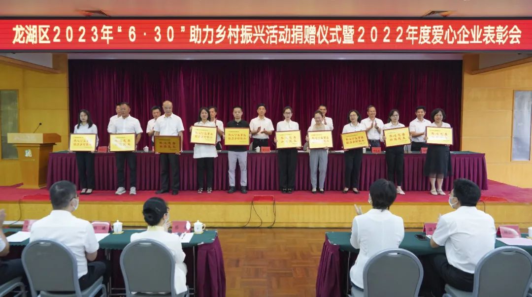 龙湖区召开“6·30”助力乡村振兴活动捐赠仪式暨 爱心企业表彰会