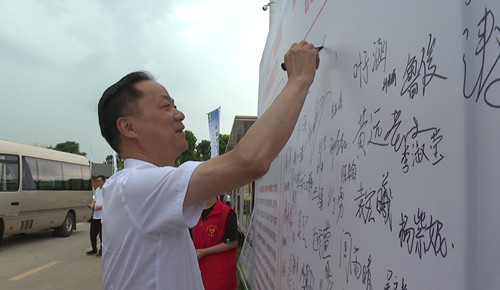 7月8日上午,全市2023年“拒绝升学宴·文明毕业季”主题活动在聂市镇乘岭社区涓湖生态果园举行。市委书记王文华,市委副书记、市长刘琦等市领导与93名准大学生代表现场签名拒绝违规操办和参与“升学宴”“谢师宴”,承诺不盲目跟风攀比、不铺张浪费。
