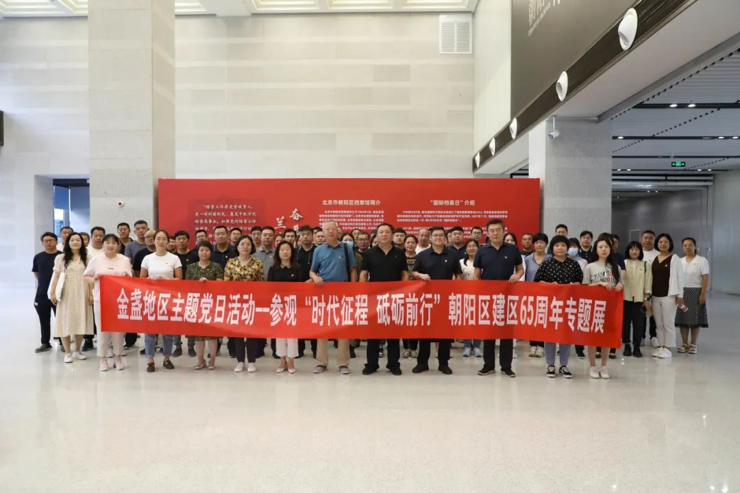 为深入学习贯彻党的二十大精神,进一步深化区情教育,引导党员干部全面认识和了解朝阳区65年来的跨越式发展以及取得的非凡成就,7月10日-7月11日,金盏地区组织全体班子成员,机关科室负责人,各村(社区)正职,乡属企业党政负责人,机关两编人员开展主题党日活动,分别前往朝阳区规划艺术馆、朝阳区档案馆分批参观“礼赞新时代 奋进新征程”发展成就展、“时代征程 砥砺前行—朝阳区建区65周年专题展”。