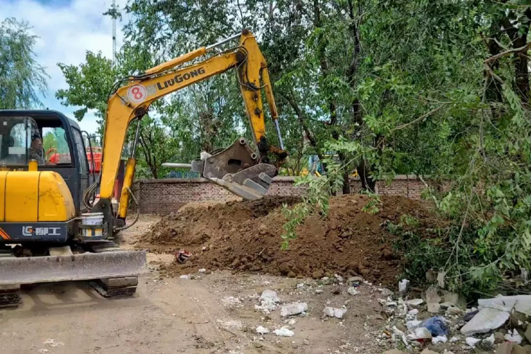 拆除前,耕地专班工作人员前往点位查看,并叮嘱施工单位注意安全拆除,合理安排施工时间,避开酷暑时段,利用环境气温较低的早晨进行拆除。