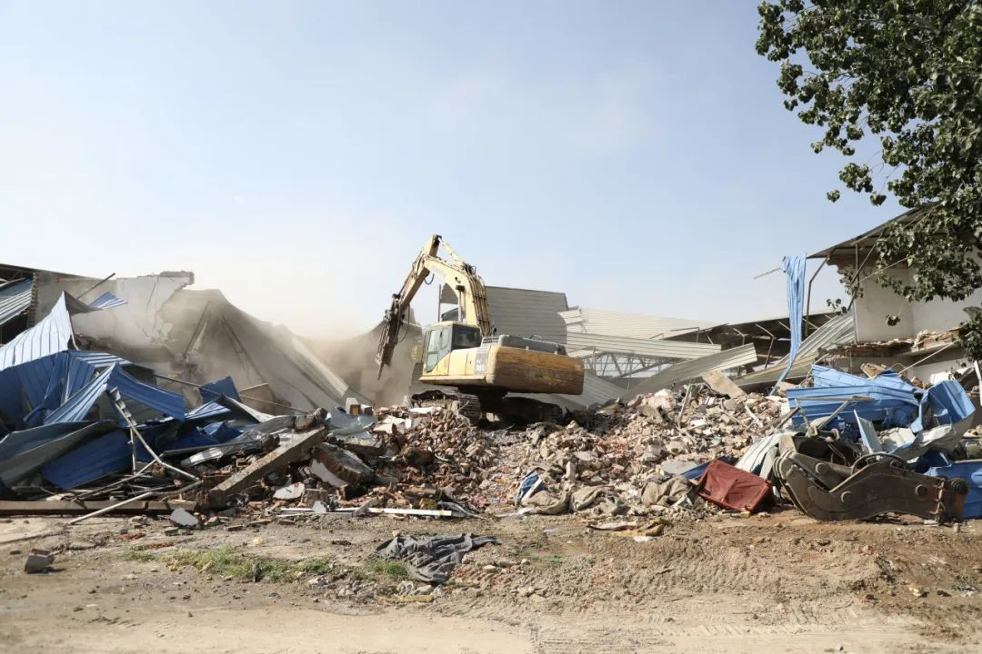 7月10日上午,雷庄村东侧点位开始机器拆除,面积约12000平米。