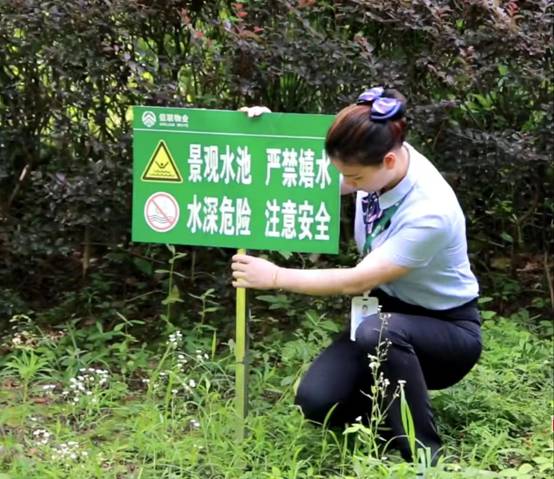 同样,在栢景雅居紫微轩小区内,红领管家正在小区的人工湖边设立防溺水警示牌, 同时向小区内的孩子们宣传防溺水相关知识。据了解,进入暑期,黄山信联物业党支部的红领管家们除了每天在小区内进行日常巡查以外,还会在小区的人工湖、水塘旁加大巡查频次和时间,并不时向小区业主宣传防溺水知识。