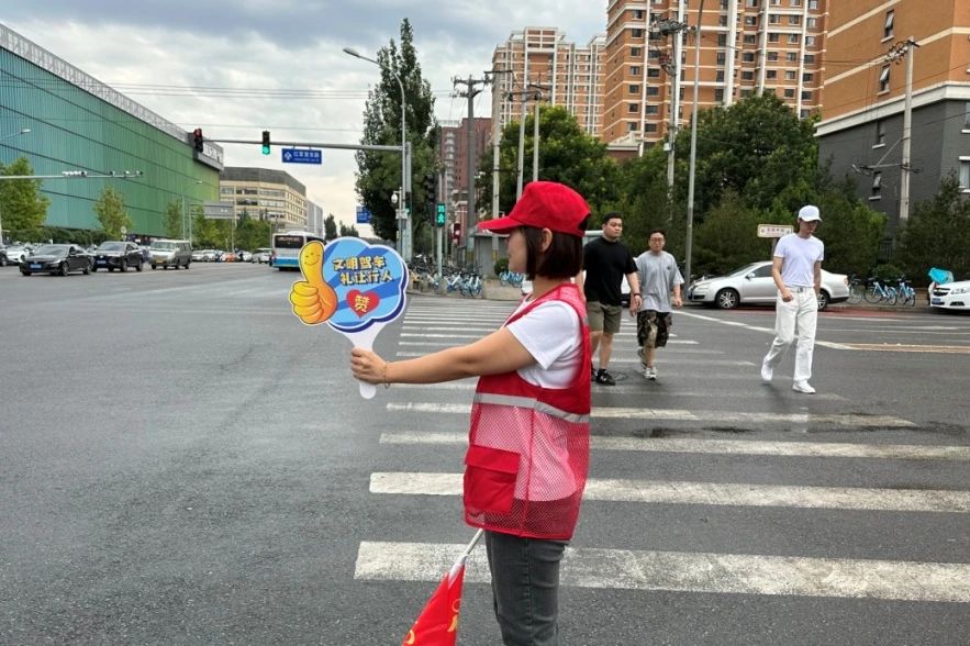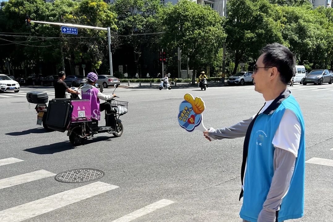 此外,志愿者们还主动指路引导、码放共享单车,提升路口通行效率的同时,也种下了文明的种子。