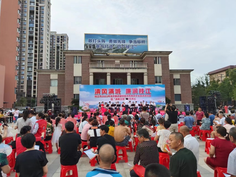 枝江融媒(记者 闫双双 通讯员 曹玲 樊雪雨)7月11日晚,由中共枝江市纪委监委、中共枝江市委办公室、中共枝江市委宣传部联合马家店街道、枝江市文联、枝江市歌舞剧团、枝江市音乐家协会、丰坪巷社区社区新时代文明实践站共同举办的“清风满城 廉润枝江"枝江市2023年党风廉政建设宣传教育月文艺宣讲进社区暨“清廉之夜”文艺演出在市大礼堂广场举行。