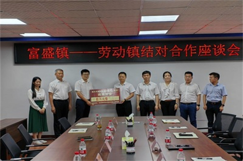 富盛镇一行在劳动镇会议室召开了结对合作座谈会。县委常委、副县长沈水梫参加会议。会上,两镇主要负责人分别就本镇发展情况和结对合作情况进行了深入了解,就下一步人才交流、农产品加工、劳务合作和产业发展等方面进行了热烈洽谈。会议还举行了捐赠仪式,由富盛镇向劳动镇捐赠对口帮扶资金10万元,助力劳动镇乡村振兴发展。会上,沈水梫同志就两镇的合作方式和共促目标进行了指导发言,对两镇基于产业优势,延续结对情谊,形成合作成果提出具体要求。同时指出,富盛镇要积极传授产业发展经验,协助劳动镇探索形成发展模式;劳动镇要因地制宜的吸收好方法好点子,发挥区域优势,盘活闲置、促进发展。