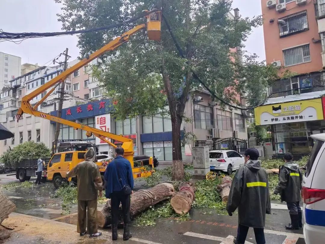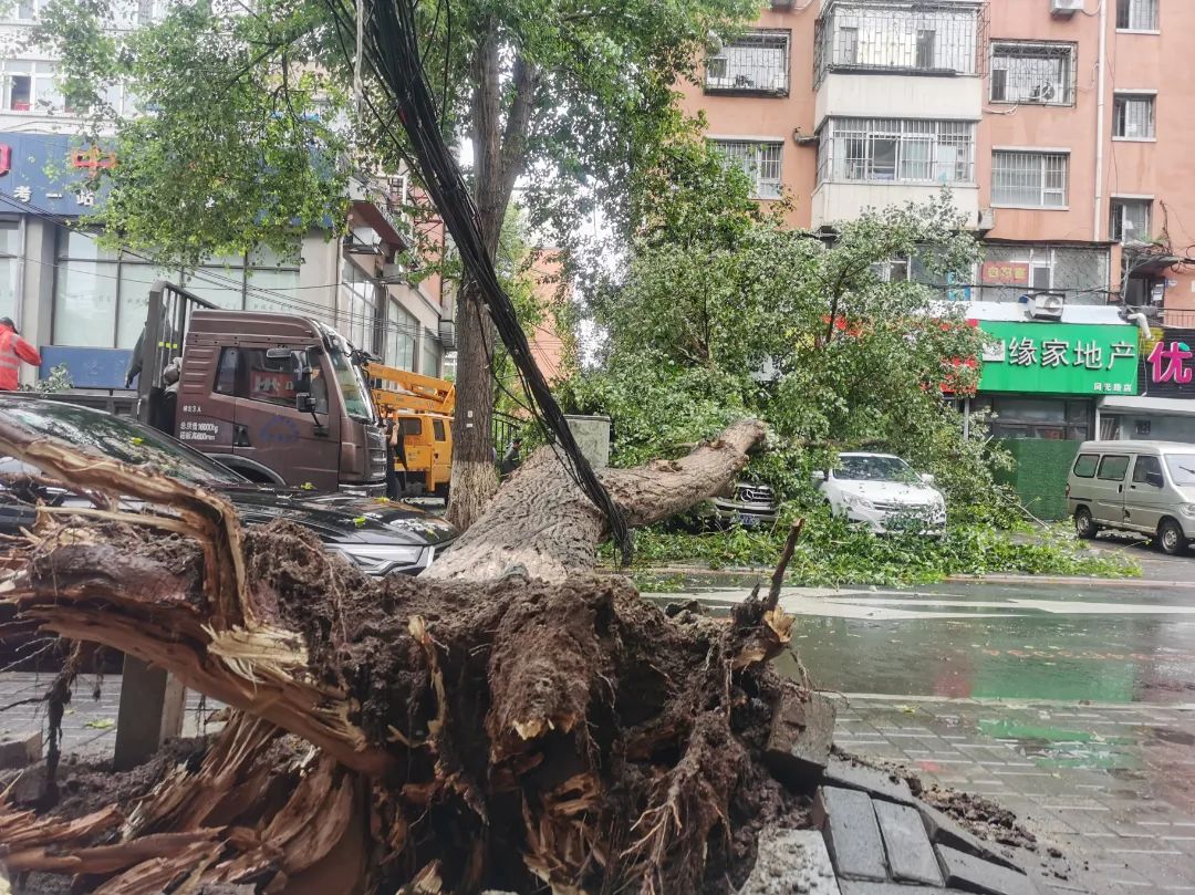 抵达现场后,在市交警支队朝阳区大队民警配合下,经现场勘查、制定施工方案、组织人员全力抢险。应急抢险人员在做好安全防护措施的情况下,冒雨对倒伏树木进行切割作业。同时,对另一株存在危险的树木进行了有效处置。经过近两个半小时的紧张作业,倒伏、危险树木得以处置、清运完毕,居民出行更加安全顺畅。