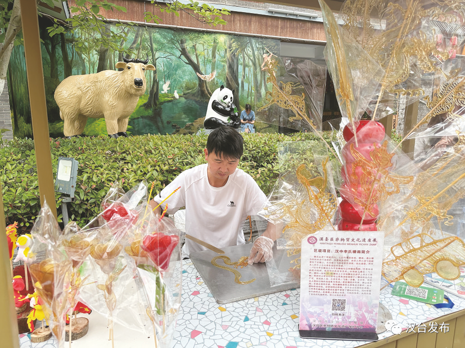 非遗糖画手艺人李宝静做糖画已有23年之久。随着汉中迅速发展,成为远近闻名的旅游城市,他放弃了以前的工作,在天汉长街全职做起了糖画生意。“糖画作为文化传承的缩影,是中华文明的瑰宝,我们的每一份努力都是为了让它更完整地流传下去。”李宝静告诉记者。为让更多人感受传统文化、爱上传统文化,他就在糖画创作的传统基础上加入现代元素,如秦岭四宝糖画。一口“非遗”一口甜,用蜜糖作画“人间美好”,糖画作品也需要不断创新。他希望通过糖画让底蕴深厚的汉文化走进更多人的生活中,将这门技艺传承并发扬光大。
