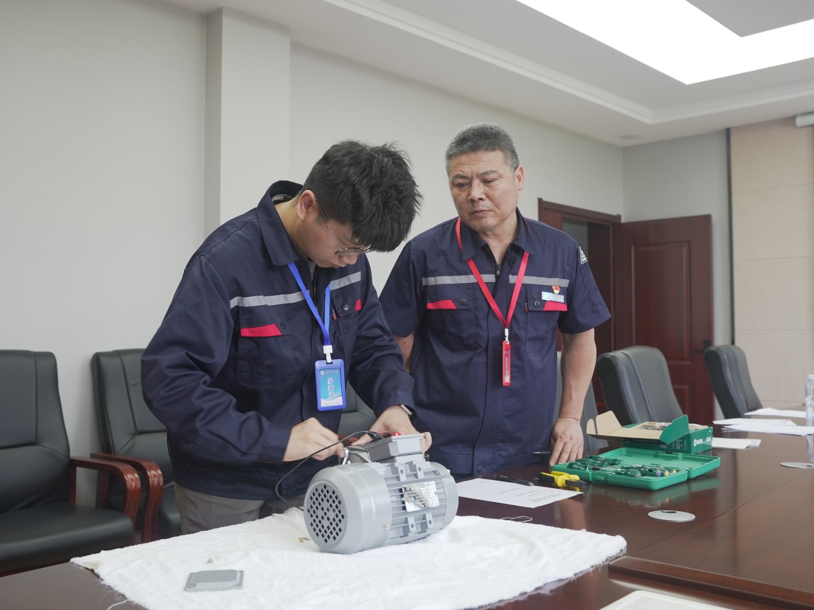 本次竞赛分为理论考核和实操考核两个部分。实操考核包括电动机绝缘电阻测量、电动机接触连锁正反转、游标卡尺测量钢丝绳3个科目,综合考查参赛选手的专业理论和实操技能。面对各项理论和实操的考验,参赛选手们沉着应对、细心操作,展现了扎实的专业知识和熟练的操作技能。