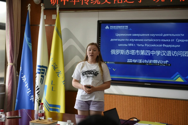 区政府外办主任王传东、区教委副主任张佰军、石景山社区学院院长于志勇共同为研学团师生颁发结业证书。王传东表示,人文交流合作是促进中俄两国人民相知相亲的重要纽带。希望此次研学活动能给同学们带来丰富的知识和美好的回忆,行中有所思,思中有所获。期待同学们以此次研学活动为契机,继续推广中国文化,推动中俄文化交融,传承和巩固两国人民间的深厚友谊。