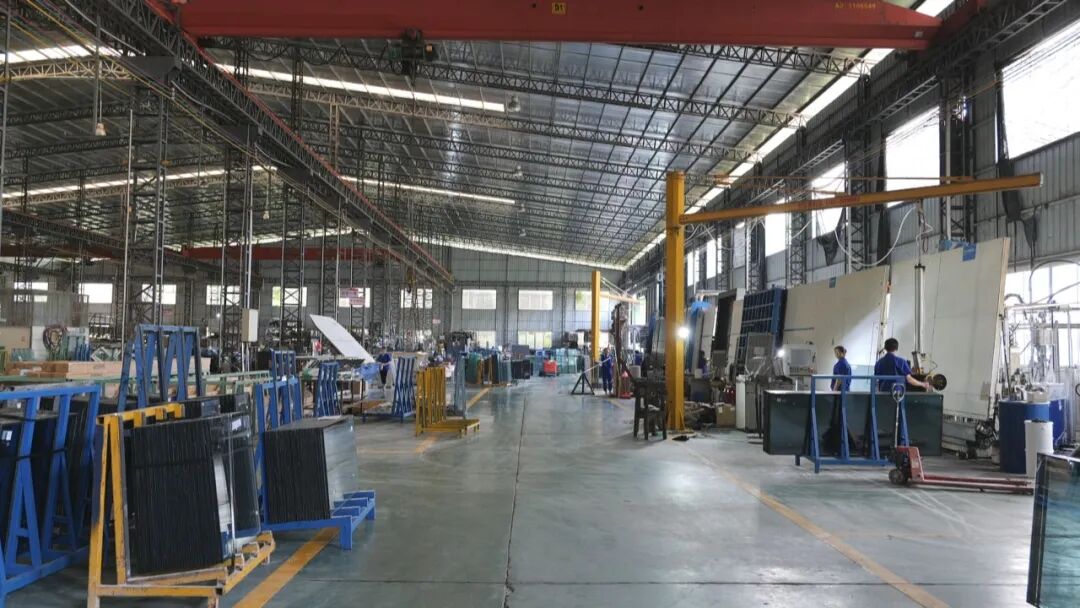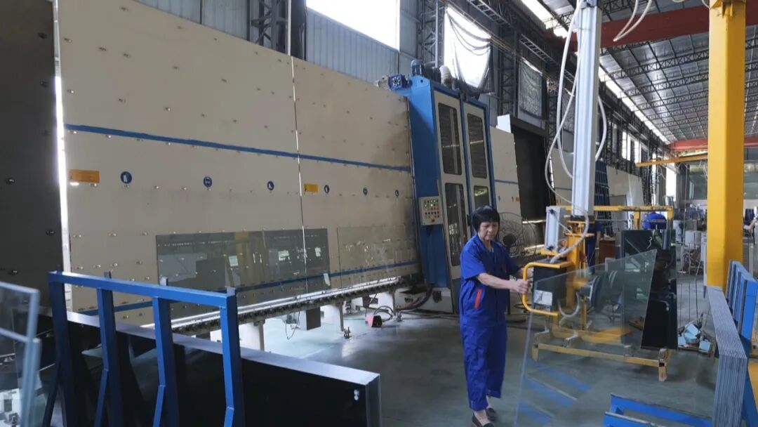 记者叶艳:“这里是位于扶大三葵村的梅州运泰玻璃有限公司,生产厂间内机器轰鸣,生产氛围火热。记者了解到,该公司主要生产钢化玻璃、中空玻璃和夹胶玻璃,产品主要运用于建筑行业。今年以来,随着国内市场的持续回暖,公司的生产也进入加班加点的饱和状态。”