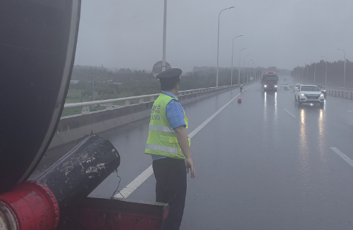 为保障所辖公路的安全畅通,市交通运输综合执法局四支队严格执行值班及巡查制度,对辖区路段进行不间断巡逻,重点加强易积水路面及沿线指路牌等易掉落物体的巡查,随时上报最新路况。同时通过视频巡查,密切关注实际路面通行情况,保持与“一路多方”相关部门的沟通,积极应对暴雨恶劣天气,通力保障公路桥梁的安全畅通。