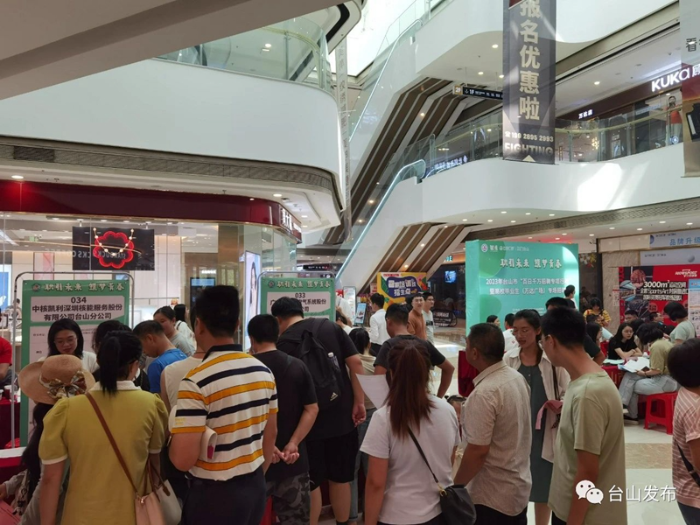 7月15日,台山“职引未来,筑梦青春”暨百日千万专场招聘活动第二场线下招聘会在万达广场举办。