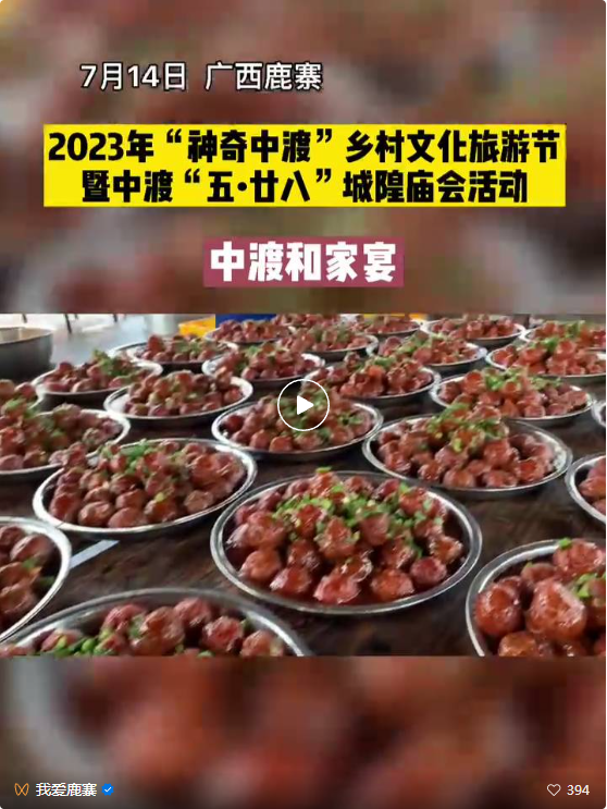 据悉,“和家宴”是中渡古镇一项独特的民间习俗,来源于百家宴。由中渡镇古时的“吃和饭”演变而来,意为招集本乡或本街巷“和得来”的邻里故人聚在一起吃团圆饭。