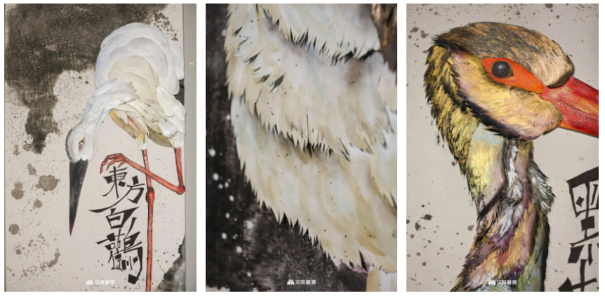△作品《鸟集鳞萃》,纸片做的鸟类羽毛,近看像真的一样。