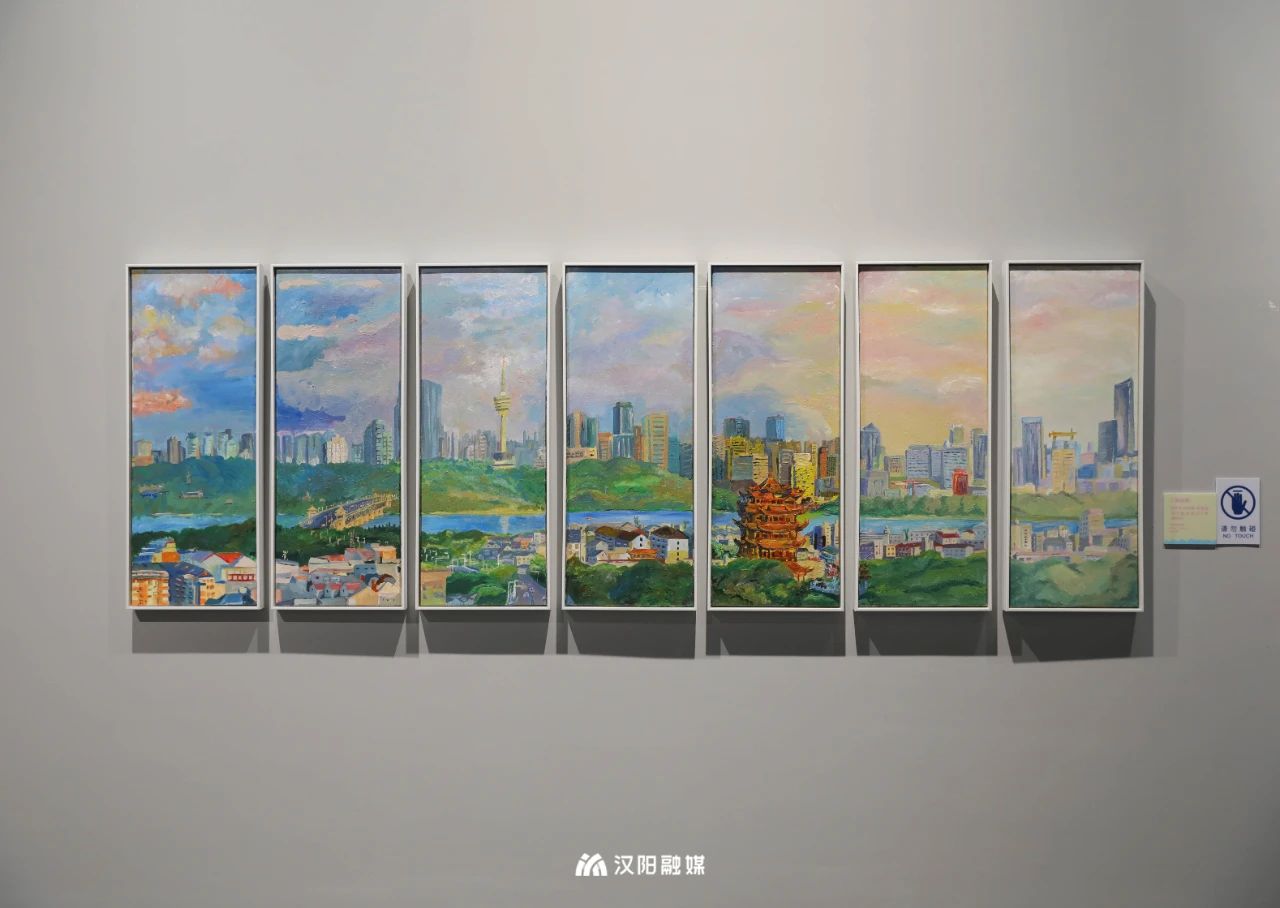 △作品《江城组图》,以武汉市的标志性建筑黄鹤楼和龟山电视塔为画作的点睛之笔,创作出大江大河大武汉的优美景色。