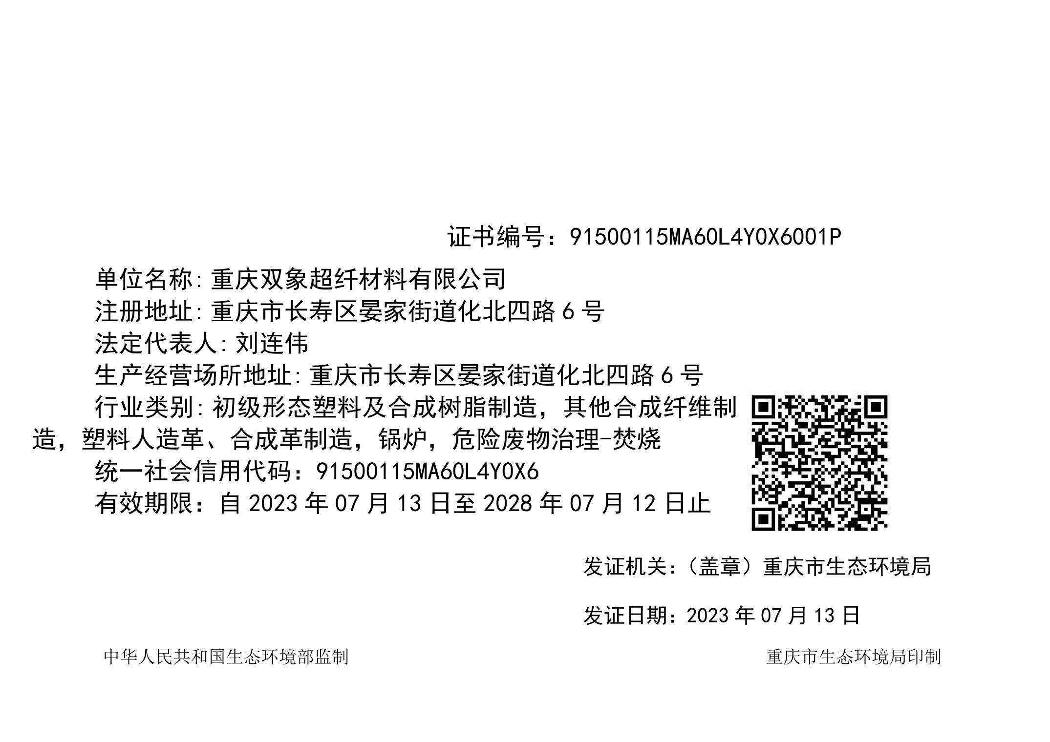 重庆双象超纤材料有限公司排污许可证