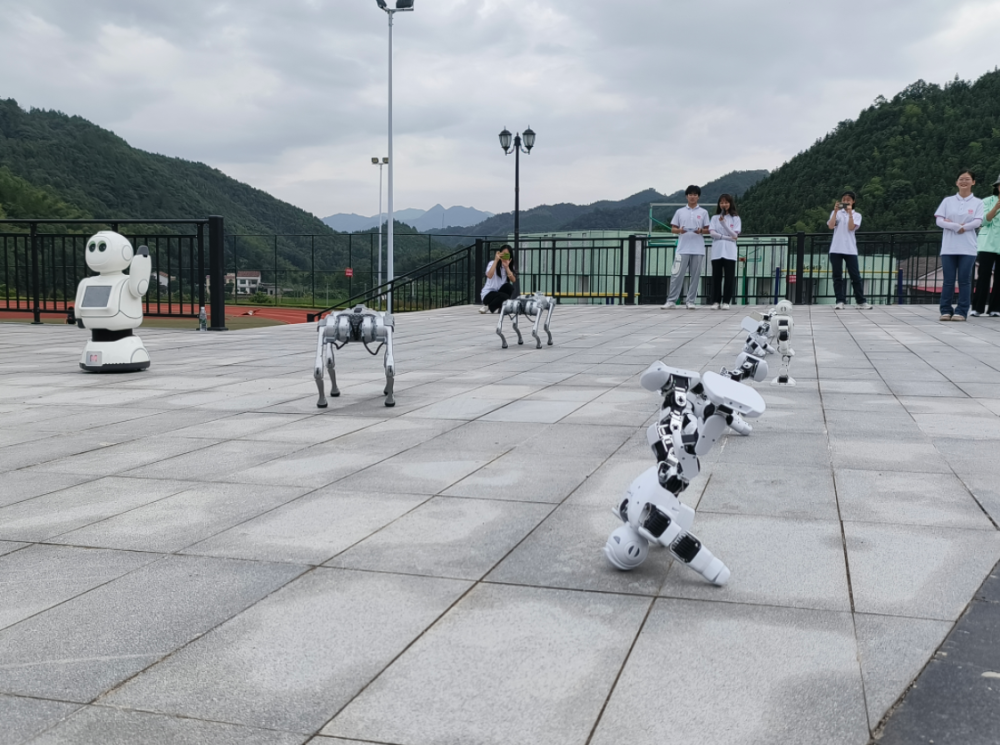 伴随着欢快的歌曲,机器人大力、阿尔法和机器狗排成队列,开始了精彩的歌舞表演。许多孩子毛遂自荐,提出要和机器人一起表演。孩子们兴高采烈地走向大力,轻轻地触摸它的各个部位。“别摸我的头,我会长不高的。”“我的耳朵会动哟!”大力的小玩笑引得孩子们哈哈大笑。