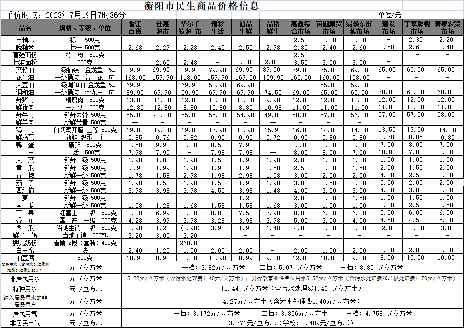 【物价】 2023-7-19衡阳市民生价格信息