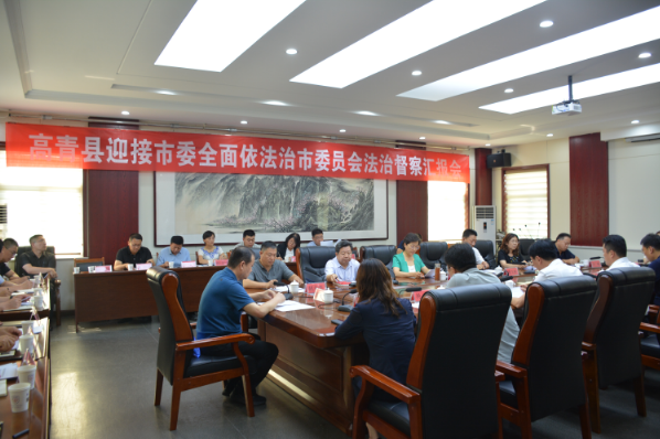 县委书记刘学圣汇报了高青县法治建设工作情况。他指出,近年来,高青县全面贯彻习近平法治思想,认真落实“一规划两纲要”,扎实推进法治建设各项工作,法治建设取得显著成效,先后被评为“第一批全省法治政府建设示范县”“全省行政复议与应诉工作联系点”“全国税务系统法治基地”。下一步,高青县将以此次督察为契机,紧盯短板弱项,狠抓整改提升,培育法治亮点,推动法治建设再上新台阶,为推进“五区建设”、打造“黄河明珠”提供强有力的法治保障。