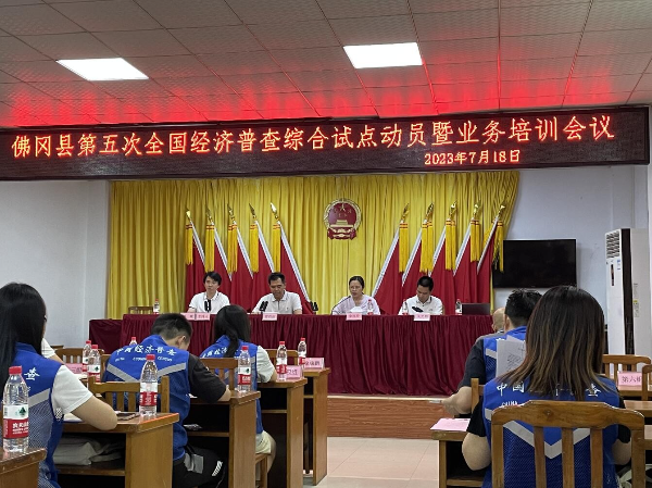 7月18日上午,佛冈县第五次全国经济普查综合试点动员暨业务培训会议在石角镇人民政府大礼堂举行,标志着全县五经普综合试点正式启动。会议由县第五次全国经济普查领导小组办公室常务副主任、县统计局副局长肖斌主持。县经普办、各镇经普办、社区、村普查业务骨干等100余人参加会议。