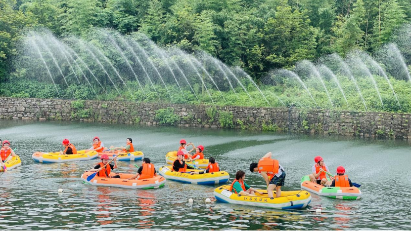 近日,广德市东亭乡阳岱山村迎来旅游旺季,来自全国各地的游客们正在红岩溪漂流景区体验生态漂流,乘着漂流艇顺着河道鱼贯而下,在绿水青山间中流击水,与“浪”共舞,欣赏生态美景的同时,纵享清凉。