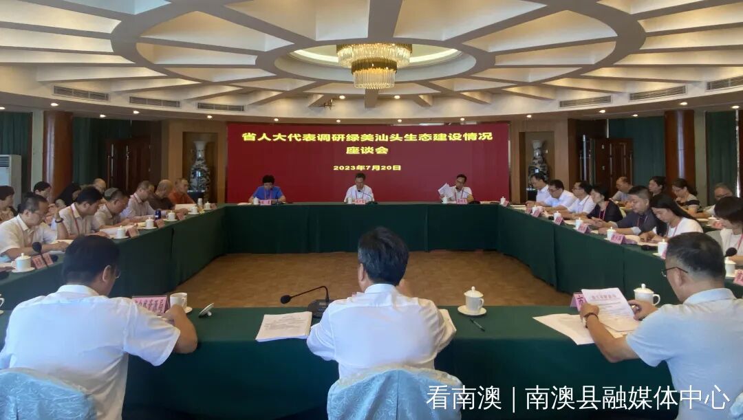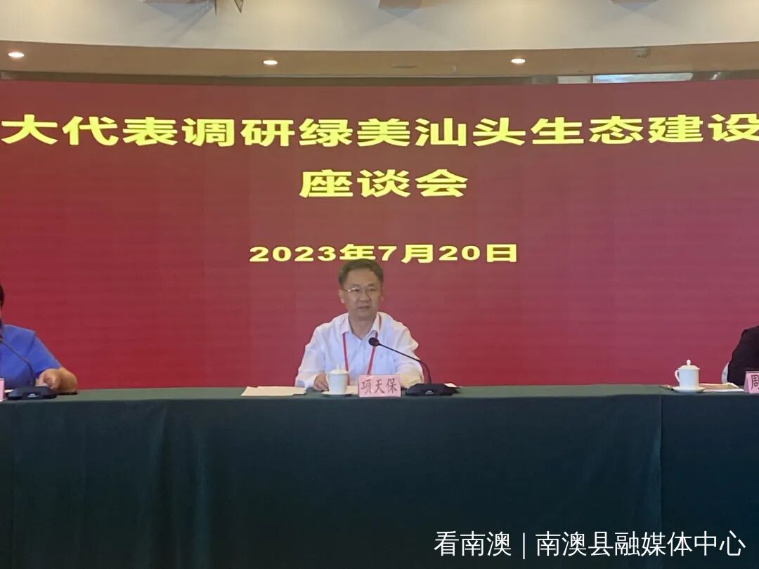 7月19日至20日,汕头市人大常委会组织我市选举的省人大代表赴南澳县海岛国家森林公园、深澳镇总兵府、云澳镇云祥村林相改造项目等绿美生态示范点开展“推进绿美汕头生态建设”专题调研,并在南澳迎宾馆会议室召开座谈会,听取市政府及有关部门汇报。省人大常委会副秘书长周四龙,市人大常委会党组书记、主任项天保等32位省人大代表,市领导林锐武、林曼,南澳县领导林钢塔、章楚强、林振辉等参加活动。