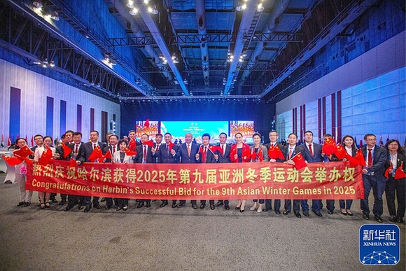 哈尔滨申办2025年亚冬会陈述现场。新华社记者 王腾 摄