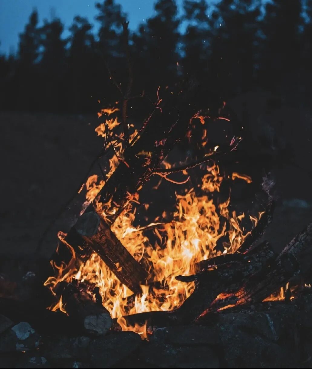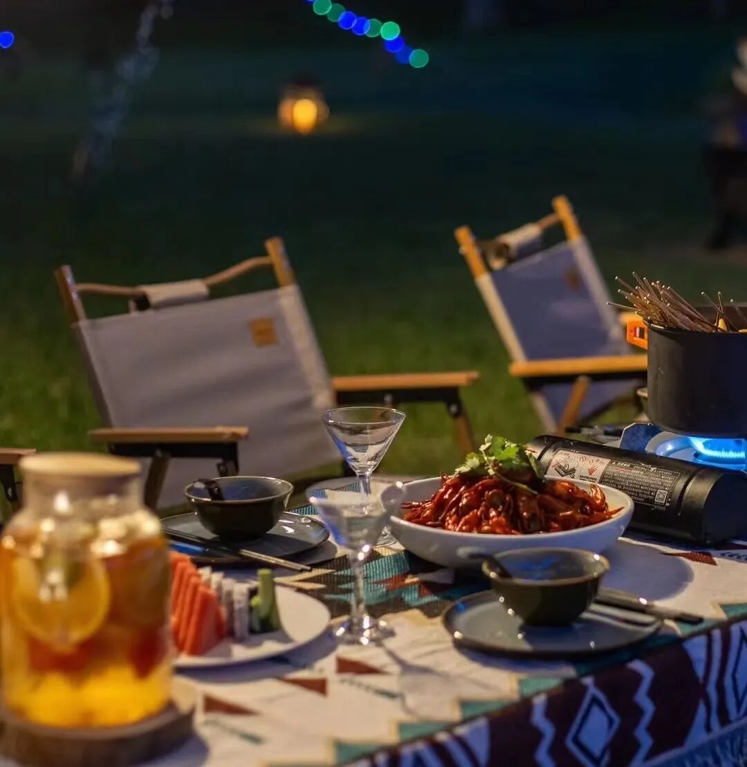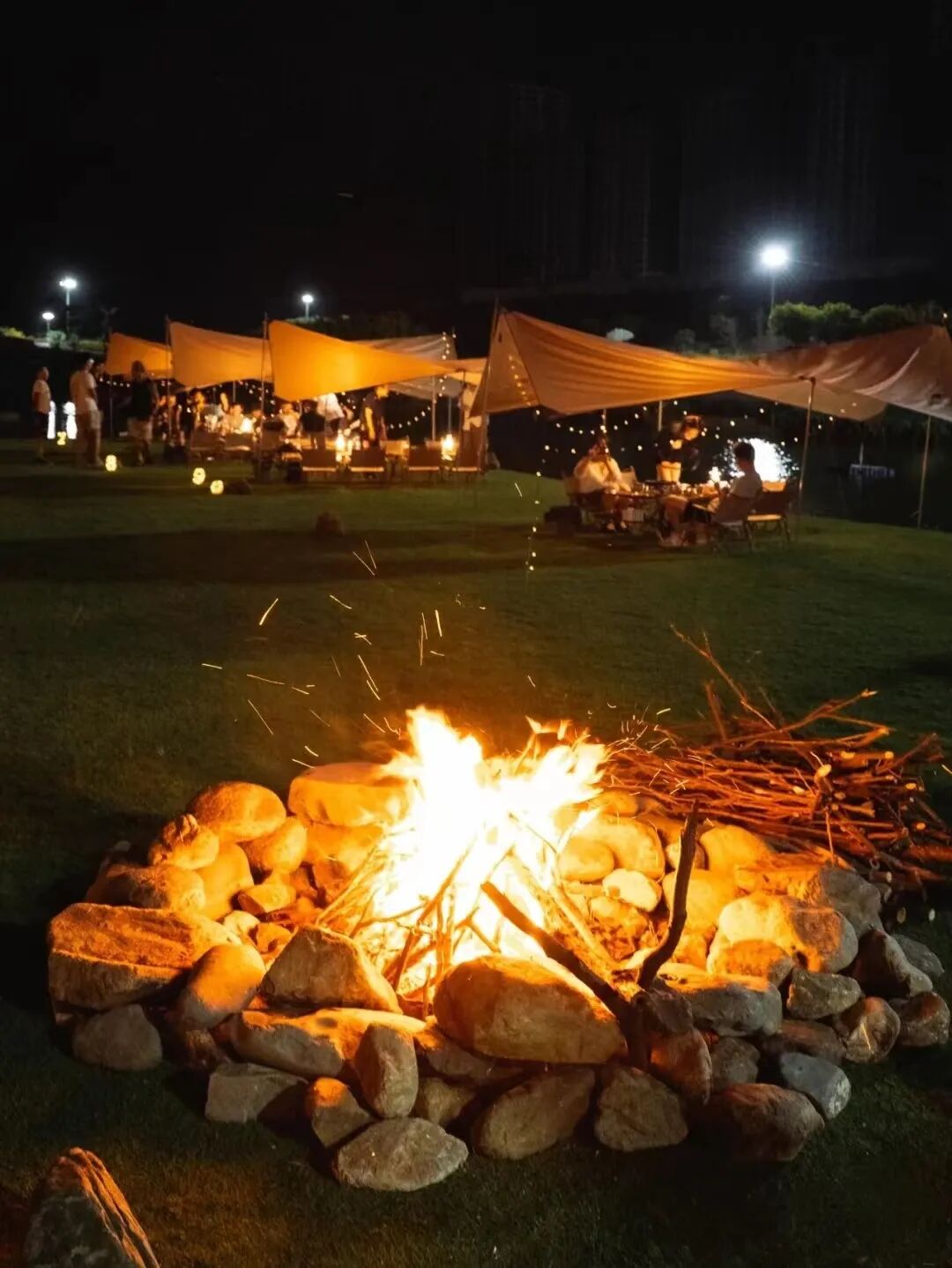 篝火、星光、帐篷、草坪