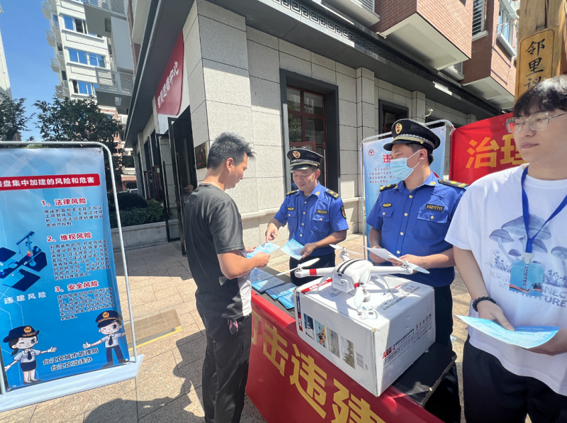 活动现场,工作人员通过悬挂横幅、摆放展板、发放宣传资料、设立政策咨询台等形式开展治违宣传。展板上展示着“两违”整治相关政策知识、典型案例等,以图文并茂的形式进行集中宣传,让群众更直观地认识到违法建设等侵占公共规划资源的行为不仅影响市容市貌、破坏城区总体规划,还危害社会公平与市场秩序,会造成治安、消防与建筑安全隐患,制约城区建设与发展。在政策咨询台前,工作人员现场解答群众提出的规划建设方面有关违建的问题,让群众进一步了解哪些属于“两违”、违建会造成哪些后果、会受到哪些处罚等。工作人员还向现场群众发放《齐心协力治“两违”,构建宜居宜业新台江——致市民朋友的一封信》等宣传品,引导群众逐步形成自觉防范和制止“两违”行为的意识。
