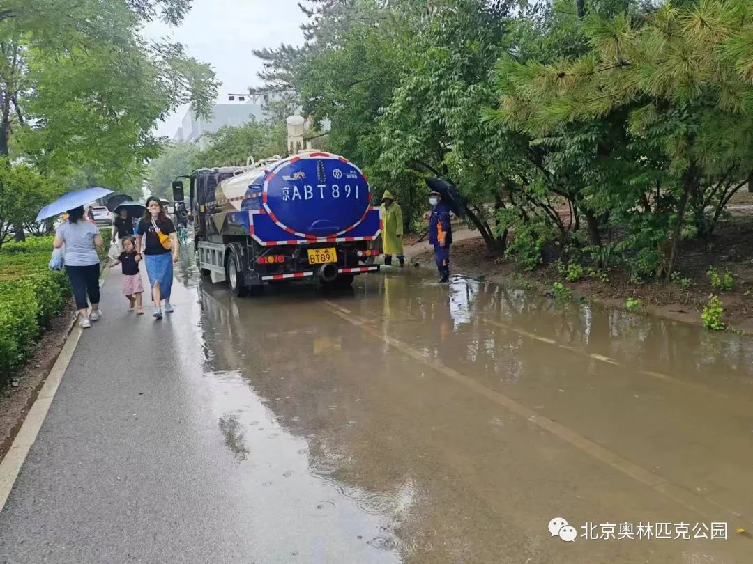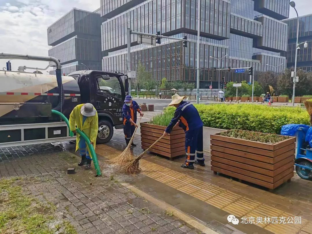 自7月21日起,根据降雨情况,奥管委市政管理部将重点工作投入到道路清理作业中,迅速处置道路积水,检查园区易积水点位,疏通排水设施,为市民安全出行提供了有力保障。