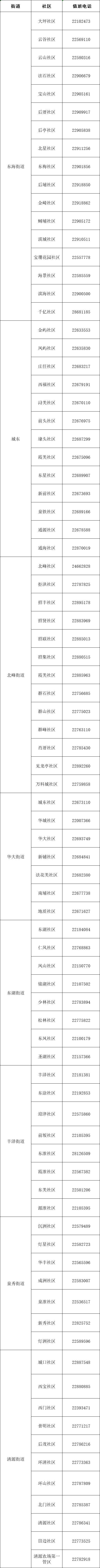| 东海街道 | 059522906541 |