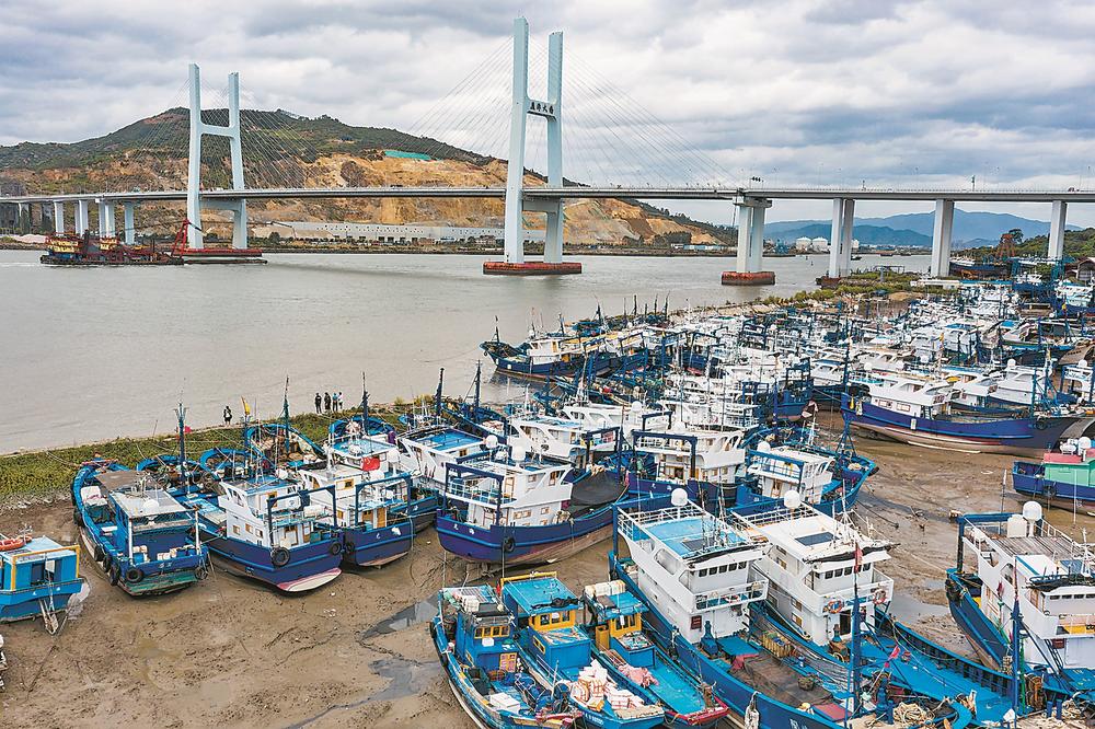 26日,在漳州龙海区海门岛,渔船进入避风港停泊。记者 王毅 摄