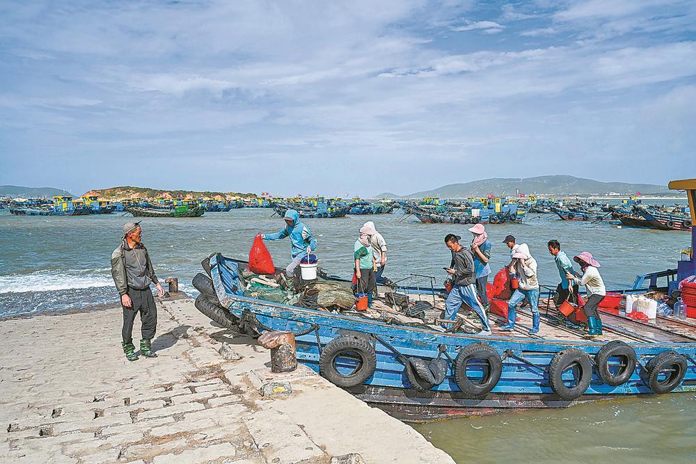 渔船归港 渔民上岸