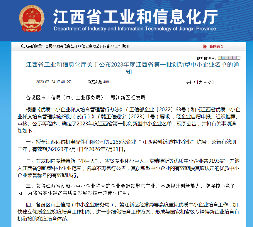 赣州310家企业上榜!2023年度江西省第一批创新型中小企业名单出炉