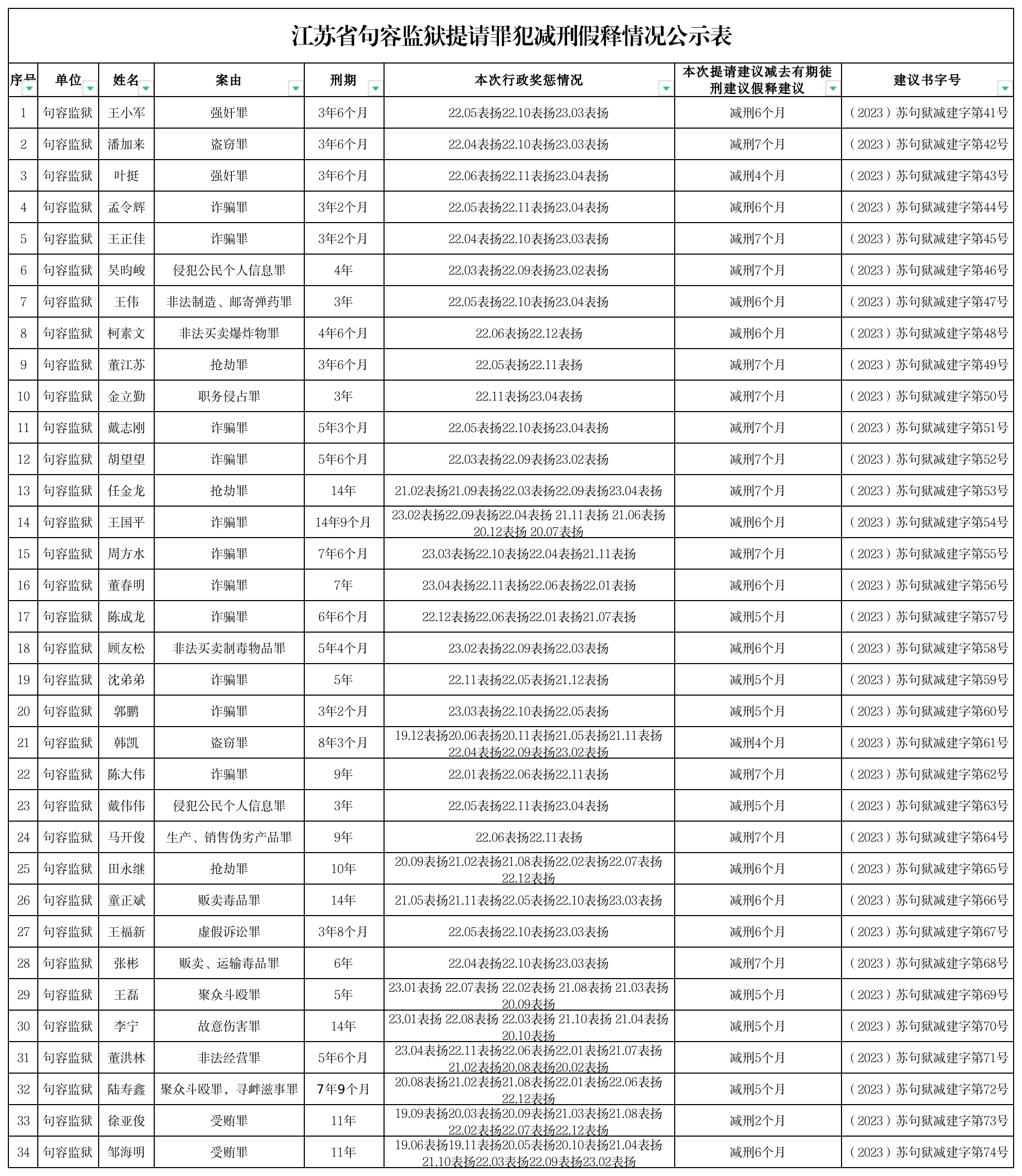 江苏省句容监狱提请罪犯减刑假释情况公示表