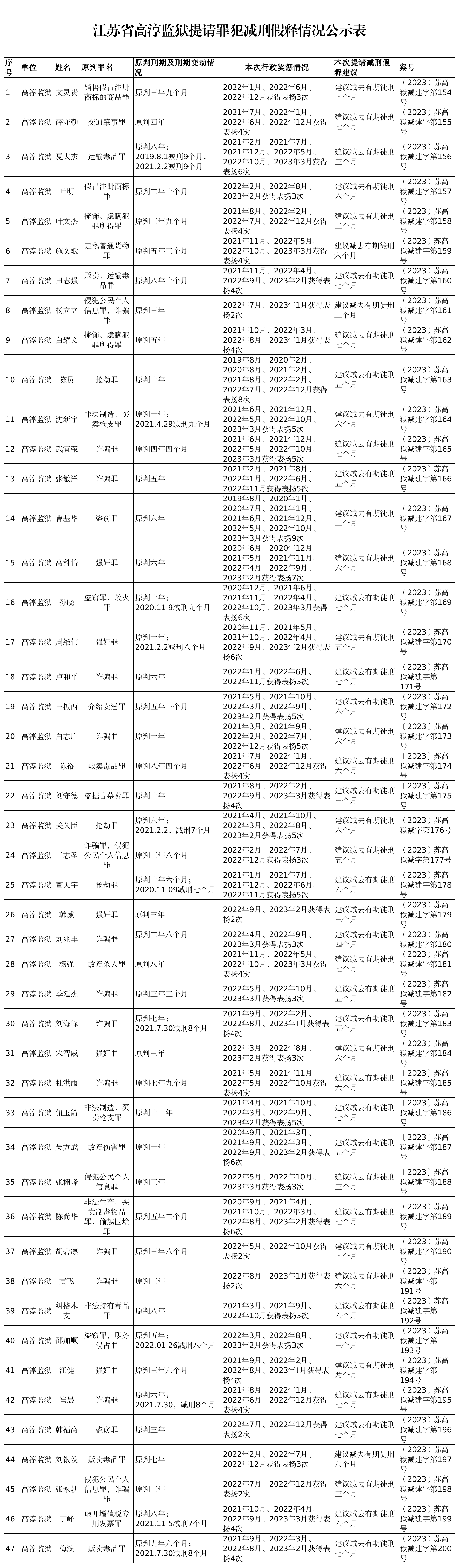 江苏省高淳监狱提请罪犯减刑假释情况公示表